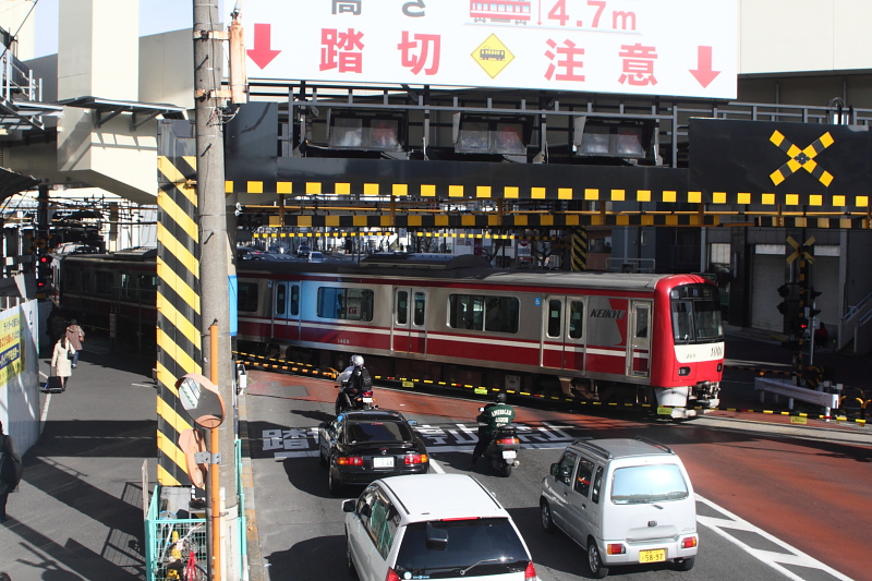 で、ついにつきました、京急蒲田。最初は駅の品川よりの踏み切りで列車の運行を観察していたが、普段JR東日本のゆるゆるダイヤに慣らされた目には京急の運行は刺激的である。羽田空港からの新逗子行き急行が到着後、まだ場内信号赤の状態で踏切がなり始め、新逗子行きが発車したところで、場内信号がすぐ警戒に変わり、さらに注意に変わる頃には北総線方面からの羽田空港行きが到着、その後一瞬にして進路が切り替わり、久里浜行き快特が到着。Youtube に京急の動画は大量にあがっているが、やはり実際に見ていたほうが楽しい。