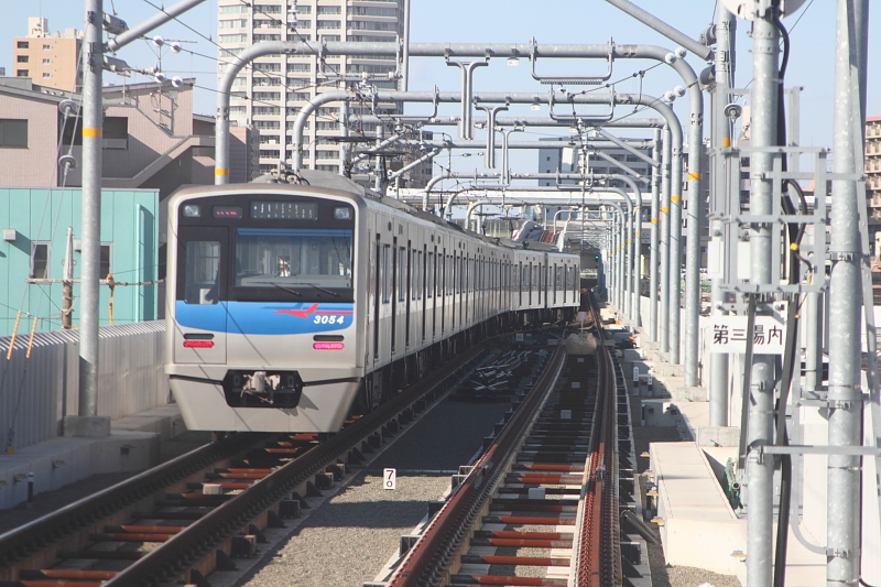 京急の京急蒲田付近の下り線が今年5月に高架化されたが、これに伴い、空港線の京急蒲田~大鳥居(糀谷駅構内?)が単線並列で運用されている。この変則的な運行は高架化が終了してしまうと見られなくなるため、本日少々観察してきた。