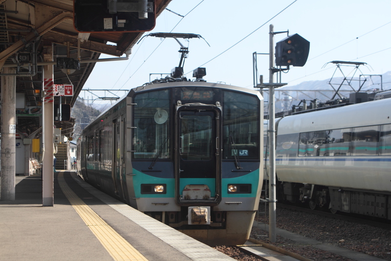 翌朝、名古屋にはおそらく定時に着いたと思うのだが、確かな記憶はない。食べ物が豊富に並んだキオスクでおにぎりを購入し、ホームへ向かう。キオスクの品揃えを見る限り、名古屋では特に震災の影響は見受けられない。06:45発の新快速大垣行きに乗車、大垣へ。米原方面の接続列車はなく、結局後続の豊橋発米原行きの区間快速に乗る羽目になった。空席がなく立席。米原から北陸線敦賀行きに乗り換える。521系初乗車。全線直流区間なのに521系を使うのは勿体無い気もする。敦賀で駅の外に出て時刻表を購入。インターネットの時刻表で乗り潰し計画を立てるのは著しく面倒なので、本の時刻表は必須である。
