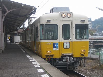 7000形単行の普通列車観音寺行きで川之江を10:40に出発。乗客は6人しかいない。県境を越える需要が細いのは珍しくないが、やはり寂しい。香川県に入ってからの2駅でやや乗客を増やし、観音寺到着。ここからは121系2両編成多度津行き。観音寺からは比較的人家が続き乗客を順調に増やし、若干の立客を出しながら多度津到着。ここで一旦改札を出て、「ことでん・JRくるり~んきっぷ」を買う。多度津からまず12:16の土讃線列車で琴平へ。この列車も121系だ。121系は確か余剰の足回りを使って製造されており、台車はDT33、主電動機はMT55だったと思う。1M方式なので、制御装置は当然違うはずだが、なんだか103系を思い出させる音であった。5月に大阪で乗って以来、103系には乗っていないので、103系がどんな音で走るのかももうはっきりとは思い出せないのだが・・・