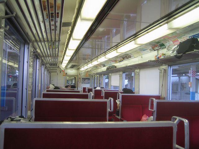 6050系車内、やはりクロスシートのほうが旅行気分が盛り上がる。